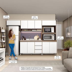 Armário Cozinha Compacta Balcão Pia Torre Quente Menu Móveis Branco A Cozinha Sabrina Modulada foi desenvolvida para atender todas as suas necessidades do dia a dia com um design moderno, funcionalidade e versatilidade. A Cozinha Modulada e a tendencia do momento e foi arquitetada com modulos uteis que vao facilitar a sua rotina diaria, preparos dos alimentos e armazenamento dos utensilios e mantimentos, mantendo sua cozinha sempre organizada. Por se tratar de armarios de cozinha modulados voce pode ajustar os modulos conforme o espaco disponivel e montar diversas modulacoes diferentes para deixar o ambiente muito mais aconchegante. A elegancia fica por conta dos puxadores em perfil e os pes dando um toque unico de sofisticacao. A Cozinha Sabrina e produzida com materiais de excelente qualidade, garantindo a durabilidade e vida util. O melhor em moveis no design atual aliando conforto, qualidade e otimos precos, so na Menu Moveis! Caracteristicas: Produzida em MDP de 15 mm Acabamento UV Portas com Dobradica Metalica Porta Basculante com Pistao a Gas Gavetas com Corredica Telescopica Puxadores Perfil em ABS Pes com Regulagem em ABS NAO acompanha TAMPO e PIA