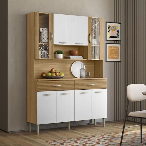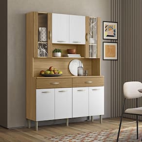O Armário Compacto Golden é a escolha ideal para quem deseja praticidade sem abrir mão do estilo. Com acabamento moderno, oferece amplo espaço interno com 8 portas e 2 gavetas, sendo duas portas com vidro, perfeito para organizar utensílios e mantimentos. Seu design compacto se adapta com facilidade a diferentes ambientes.