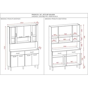 Conteúdo da Embalagem: 1 Armário de Cozinha, Kit Ferragem, Manual de Montagem
