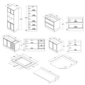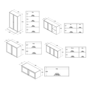 - Compartimentos variados, incluindo gabinetes superiores e inferiores, otimizando o aproveitamento do espaço em cozinhas de diferentes tamanhos