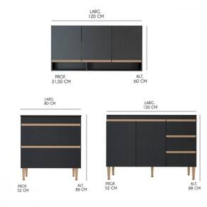 Caracteristicas: Marca: Menu Moveis Modelo: Sabrina Produzida em MDP de 15 mm Acabamento UV Texturizado Portas com Dobradica Metalica Porta Basculante com Pistao a Gas Gavetas com Corredica Telescopica Puxadores Perfil PVC Pes Regulares ABS