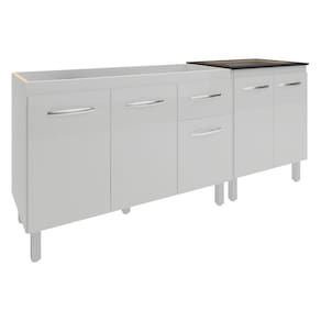 Largura: 188 cm (lado a lado os dois balcões) Profundidade: 53 cm (balcão para cooktop com tampo), 50 cm (sem tampo) Altura: 85 cm (balcão para cooktop com tampo), 83,5 cm (sem tampo)