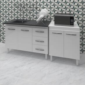 Armário Cozinha Gabinete Pia De 120 Cm Bianca Com Balcão Multiuso Micro-ondas Branco Serena