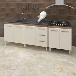 Armário Cozinha Gabinete Pia De 150 Cm Diana Com Balcão Cooktop 4 Bocas Savana Frente Off-white Jade O Kit Balcão para pia de 150 cm Diana com Balcão para Cooktop 4 Bocas Jade vai trazer para a sua casa praticidade, elegância e tornar a sua cozinha um ambiente ainda mais especial. Por serem móveis da mesma linha, eles combinam, deixam o hambiente harmônico, diferenciado e ainda mais atraente! A sua cozinha merece este lindo kit da Moblis Móveis, adquira já o seu! Características: Altura:83,5 cm (Com os Pés). Altura sem os pés: 67 cm. Largura: 148 cm (Padrão para pia de 150 cm). Profundidade: 50 cm. Material: MDP (madeira). Portas: 3 Portas. Gavetas: 3 Gavetas. Prateleiras: 1 Prateleira. Puxadores: 6 puxadores plásticos cromados Pés: 6 pés reguláveis de plástico. Altura dos pés:16,5 cm Regulagem dos pés: Somente para nivelamento, (Chega no máximo a 18 cm). Corrediças: Metálicas. Indicações de Uso: Cozinha *Imagem meramente ilustrativa, Não acompanha tampo ou pia nem objetos decorativos, é somente o balcão.