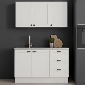 Imagina chegar na sua cozinha e ter tudo no lugar, com um visual leve e super aconchegante. Esse conjunto é completo: o balcão tem 2 portas espaçosas e 3 gavetas práticas, perfeitas pra organizar talheres, panelas e acessórios do dia a dia, enquanto o armário aéreo de 3 portas ajuda a manter pratos, copos e mantimentos sempre à mão, sem bagunça. O acabamento branco traz aquela sensação de limpeza e amplitude, deixando o ambiente mais iluminado, e os puxadores tom champanhe dão um charme especial. Além de lindo, é um móvel resistente, feito em 100% MDF, garantindo qualidade e sustentabilidade. Ah, e vale destacar: o kit não acompanha tampo, assim você pode escolher o que mais combina com seu estilo ou até instalar uma pia. Uma solução perfeita pra quem busca praticidade no dia a dia e quer deixar a cozinha com muito mais charme e personalidade!