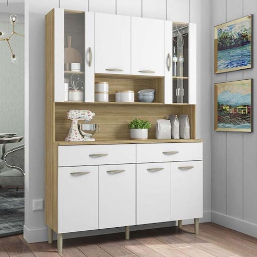 Quantidade de portas: 08, sendo 2 portas com detalhe em vidro;