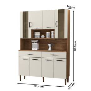 Quantidade de portas: 08, sendo 2 portas com detalhe em vidro;