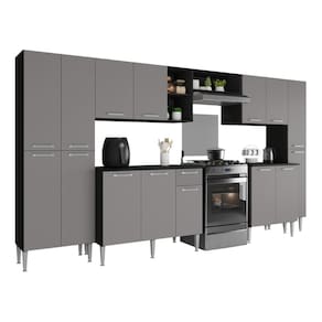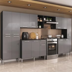 Diferenciais: - 3 anos de garantia contra defeitos de fabricação e material. - Produzida em madeira de reflorestamento (MDP 12/15mm): garante resistência e durabilidade. - Acabamento acetinado com cerca de 20% de brilho: visual sofisticado e facilidade na limpeza. - As opções de cor Preto/Lacca Fumê e Branco/Lacca Fumê possuem frentes com acabamento brilhante. - Composta por 6 módulos individuais, permitindo melhor adaptação ao seu espaço (nicho para fogão/geladeira é anexo ao aéreo). - Balcão com tampo de 15mm (compatível apenas com pia sob medida devido à profundidade). - Prateleiras internas e nichos externos que facilitam a organização de utensílios, mantimentos e eletros. - 15 portas com dobradiças metálicas: oferecem amplo espaço interno. - Compartimentos para armazenar utensílios mais altos com praticidade. - 1 gaveta com corrediças metálicas: ideal para talheres e itens de uso diário. - Espaço dedicado para fogão ou geladeira: otimiza o espaço do ambiente. - Puxadores em ABS com acabamento cromado: práticos e confortáveis ao manuseio. - Pés em polipropileno com regulagem de altura de 17 a 20cm: permitem um perfeito nivelamento aos módulos.
