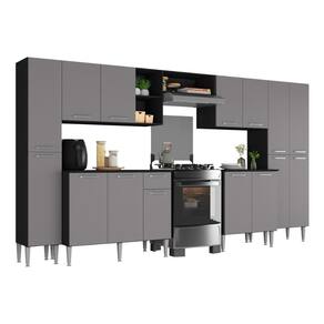 Diferenciais: - 3 anos de garantia contra defeitos de fabricação e material. - Produzida em madeira de reflorestamento (MDP 12/15mm): garante resistência e durabilidade. - Acabamento acetinado com cerca de 20% de brilho: visual sofisticado e facilidade na limpeza. - As opções de cor Preto/Lacca Fumê e Branco/Lacca Fumê possuem frentes com acabamento brilhante. - Composta por 6 módulos individuais, permitindo melhor adaptação ao seu espaço (nicho para fogão/geladeira é anexo ao aéreo). - Balcão com tampo de 15mm (compatível apenas com pia sob medida devido à profundidade). - Prateleiras internas e nichos externos que facilitam a organização de utensílios, mantimentos e eletros. - 15 portas com dobradiças metálicas: oferecem amplo espaço interno. - Compartimentos para armazenar utensílios mais altos com praticidade. - 1 gaveta com corrediças metálicas: ideal para talheres e itens de uso diário. - Espaço dedicado para fogão ou geladeira: otimiza o espaço do ambiente. - Puxadores em ABS com acabamento cromado: práticos e confortáveis ao manuseio. - Pés em polipropileno com regulagem de altura de 17 a 20cm: permitem um perfeito nivelamento aos módulos.