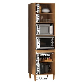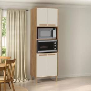 Com um design elegante, ele acomoda perfeitamente um micro-ondas ou forno, mantendo tudo organizado e ao seu alcance.