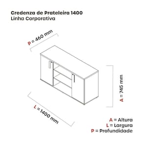 Armário Credenza 02 Portas Pivotante Credc1400 Cinza/Grafito