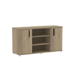 Armário Credenza 02 Portas Pivotante Credc1400 Noce Naturalle/Preto - Marrom
