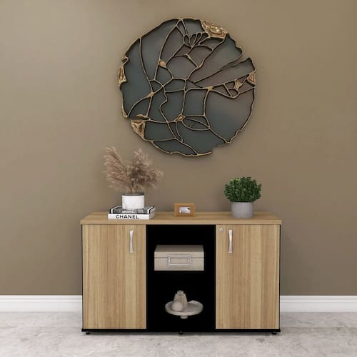 Seu design clean combina facilmente com diferentes mobílias, mantendo a harmonia da decoração. Ideal para o dia a dia de trabalho, é perfeito para deixar seu ambiente organizado, funcional e elegante. Acabamento da Porta: BP Acabamento da Prateleira: BP Ambiente Principal: Escritório Armário Suspenso: Não Complexidade da Montagem: Média: pode ser montado por mais de uma pessoa e/ou necessite de maior conhecimento para montagem Cor: Preto/Noce Naturalle Cor do Produto: Preto/Noce Naturalle Cor Interna: Preto/Noce Naturalle Escala de Brilho: Semi-Fosco Escala de Brilho da Porta: Semi-Fosco Escala de Brilho da Prateleira: Semi-Fosco Formato do Armário: Retangular Itens Inclusos: 1 Armário Manual de Montagem e Instalação: https://product-hub-prd.madeiramadeira.com.br/970614/documents/b75c247a-2ed4-41d9-805e-f5097976ed3d2723332387017411764322051.pdf Marca: Pandin Móveis Material da Porta: MDP Material da Prateleira: MDP Material dos Pés: Polipropileno Material Principal: MDP Necessita Montagem: Sim Orientação do Armário: Horizontal Origem do Produto: Nacional Peso: 36,485 kg Peso Máximo por Prateleira: 15 kg Possui Espelho: Não Possui Mesa Retrátil: Não Possui Pés: 04 Possui Portas: 02 Possui Prateleiras: 02 Quantidade de Armários: 1 Recomendações de Uso, Manutenção e Limpeza: Limpeza feita com um pano levemente umedecido e um pano seco. Sapatas Niveladoras: Sim Sistema de Montagem: Parafuso Suporta Até (kg): 30 kg Tamanho do Armário: Baixo (Até 90cm) Tipo de Armário: Semi-Fechado Tipo de Dobradiça/Corrediça da Porta: Alumínio Tipo de Puxador da Porta: Externo Marca: Não Informado