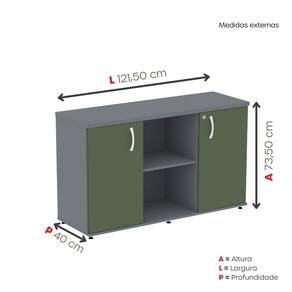 Seu design clean combina facilmente com diferentes mobílias, mantendo a harmonia da decoração. Ideal para o dia a dia de trabalho, é perfeito para deixar seu ambiente organizado, funcional e elegante. Acabamento da Porta: BP Acabamento da Prateleira: BP Acabamento dos Pés: Polipropileno Altura dos Pés: 3 cm Ambiente Principal: Escritório Armário Suspenso: Não codigo_ean: 7900288226259 Complexidade da Montagem: Média: pode ser montado por mais de uma pessoa e/ou necessite de maior conhecimento para montagem Cor: Grafito/Salvia Cor do Produto: Grafito/Salvia Cor Interna: Grafito/Salvia Escala de Brilho: Semi-Fosco Escala de Brilho da Porta: Semi-Fosco Escala de Brilho da Prateleira: Semi-Fosco Formato do Armário: Retangular Itens Inclusos: 1 Armário e Kit Ferragens Linha ou Coleção: P25 Localização do Nicho: Nicho Lateral Manual de Montagem e Instalação: https://product-hub-prd.madeiramadeira.com.br/104843451/documents/7f4179db-e420-498a-a3fe-0d1d9e02ac713176542387017568365291471.pdf Marca: Pandin Móveis Material da Porta: MDP Material da Prateleira: MDP Material do Puxador da Porta: Poliestireno Material dos Pés: Polipropileno Material Principal: MDP Necessita Montagem: Sim Orientação do Armário: Horizontal Origem do Produto: Nacional Pés Reguláveis: Sim Peso: 36,485 kg Peso Máximo por Prateleira: 15 kg Possui Espelho: Não Possui Mesa Retrátil: Não Possui Nicho: Sim Possui Pés: 04 Possui Portas: 02 Possui Prateleiras: 03 Quantidade de Armários: 1 Recomendações de Uso, Manutenção e Limpeza: Utilizar um pano levemente umedecido com água, para finalizar utilizar um pano seco. Sapatas Niveladoras: Sim Sistema de Montagem: parafuso Suporta Até (kg): 45 kg Tamanho do Armário: Baixo (Até 90cm) Tipo de Armário: Semi-Fechado Tipo de Dobradiça/Corrediça da Porta: Aço Tipo de Puxador da Porta: Externo Marca: Não Informado