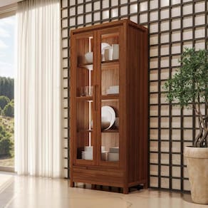 A Cristaleira Nature com 2 Portas e 1 Gaveta é perfeita para quem busca um móvel elegante e funcional para compor a sala de jantar ou cozinha. Com acabamento em Rústico e textura escovada, valoriza os veios naturais da madeira e traz um toque sofisticado e acolhedor ao ambiente.