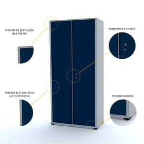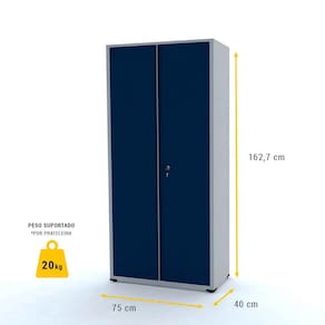 - Armário de aço com 2 portas, confeccionado em chapa de aço 26 (0,45 mm) e prateleiras em chapa de aço 24 (0,60 mm).