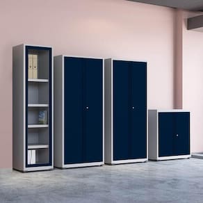 Dica para uma decoração econômica e criativa: invista em um móvel versátil, que pode decorar o escritório, a casa ou os dois ao mesmo tempo. Este armário de aço de duas portas, nas cores cinza e azul escuro, faz parte da extensa linha de armários de aço da Pandin, que são lindos, práticos e muito resistentes. Disponíveis em vários tamanhos e cores, eles organizam com estilo e praticidade desde o escritório até a área de serviço. Se você precisa arrumar os materiais de trabalho para melhorar a sua produtividade ou simplesmente complementar a decoração de um cômodo da casa e deixar em ordem seus objetos pessoais, aposte neste armário de aço e coloque mais bem-estar, conforto, organização e beleza na sua rotina. Complemente seu espaço com os outros móveis da linha Aço da Pandin, que oferece arquivos, estantes e roupeiros de aço de diversos modelos para facilitar sua vida e decorar todo tipo de ambientes.