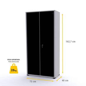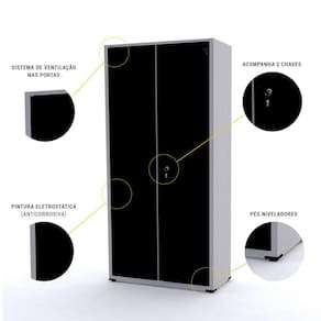 - Armário de aço com 2 portas, confeccionado em chapa de aço 26 (0,45 mm) e prateleiras em chapa de aço 24 (0,60 mm).