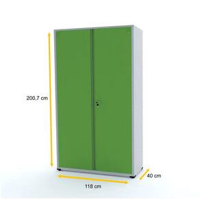 - Armário de aço com 2 portas, confeccionado em chapa de aço 26 (0,45 mm) e prateleiras em chapa de aço 24 (0,60 mm).
