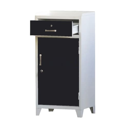 Armario de aço ferramenteiro simples, este armário em aço armazena ferramentas de maneira versátil e segura, contando com fechadura frontal. Prático e extremamente resistente, possui uma gaveta com puxador e abertura com 1 prateleira.Produzido em Aço de alta qualidade em chapa 26, com tratamento anti-ferruginoso, possui 01 porta com fechadora com duas chaves, 01 prateleiras, 01 gaveta com fechadura e prateleira. O acabamento em sistema de pintura eletrostática a alta temperatura a pó (epóxi) também garante maior durabilidade da cor e resistência à ferrugem.