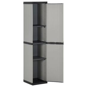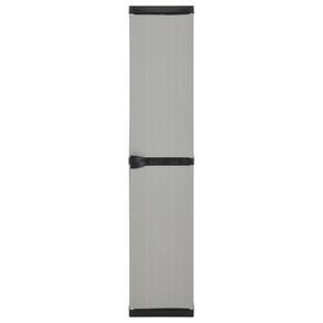 - Cor: cinza- - Forma: retangular- - Material: PVC sintético- - Acabamento: fosco- - Interno/externo: interno/externo- - Número de portas: 1- - Tampa incluída: Não- - Sala: garagem- - Número máximo de pessoas: 1- - Peso máximo: 44 libras- - Montagem incluída: hardware não incluído- - Dimensões: 13,4 x 13,4 x 66,1 polegadas (L x C x A) - - Peso: 121 libras- - Escada: Não- - Marca: vidaXL- - A entrega contém: armário de armazenamento com prateleiras- - Montagem necessária: Sim- - Número recomendado de pessoas para montagem: 2- - SKU: 340985- - EAN: 8720286875537-