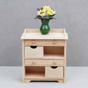 Dimensões: 7,5 cm de comprimento x 3,9 cm de largura x 8,6 cm de altura Material: madeira compensada Peso: 75 g Design de várias gavetas: armário de armazenamento em miniatura com várias gavetas e prateleira aberta, perfeito para criar cenas realistas de sala de estar ou quarto. Construção durável em madeira: feita de madeira compensada de qualidade com bordas lisas e acabamento natural, garantindo uso duradouro em configurações de teatro. Compatibilidade de escala: ideal para casas de bonecas e minicasas em escala 1:12, ótima para decorar interiores de casas de bonecas com modelos de móveis realistas. Nota de segurança importante: Brinquedo não infantil, evite engolir ou ferir acidentalmente. Este é apenas um modelo de brinquedo, não destinado ao uso na vida real. Finge Play Value: incentiva a dramatização, a narrativa e a criatividade, tornando as brincadeiras de casa de bonecas mais envolventes para as crianças.