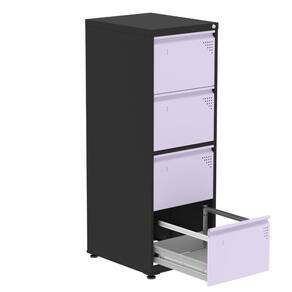 Armário de Arquivo Oficio 4 Gavetas Pandin 47 cm (Larg) Aço Preto c/ Frente Gaveta Lilás c/ Chave