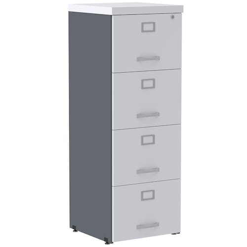 Armário de Arquivo Oficio PE25 Pandin 45,70 cm (largura) em MDP Cor Grafito e Branco com 4 Gavetas - Cinza