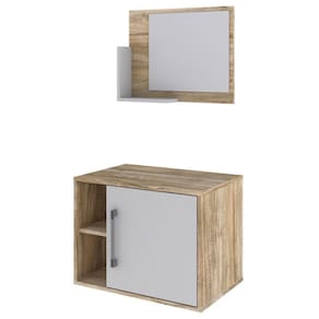 O(a) Armário de Banheiro 1 Porta 2 Prateleiras com Espelho Carvalho/Branco Chess 14700 - Compace é produzido em MDP na escala de brilho Fosco, e possui um grau de dificuldade de montagem: Médio.