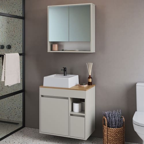 - Acompanha: Armário de Banheiro + Kit ferragens + Manual de Montagem