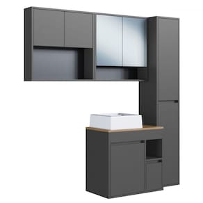 O(a) Armário de Banheiro Bangladesh 7 Portas 1 Gaveta com Cuba e Espelho Grafite - Art In Móveis é produzido em MDP na escala de brilho Fosco, e possui um grau de dificuldade de montagem: Médio.