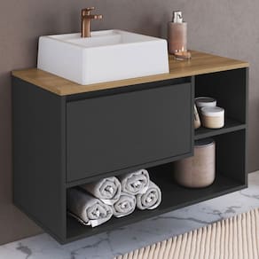 O(a) Armário de Banheiro Barcelona 1 Porta com Cuba Grafite - Art In Móveis é produzido em MDP na escala de brilho Fosco, e possui um grau de dificuldade de montagem: Médio.