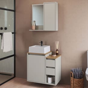 - Acompanha: Armário de Banheiro + Kit ferragens + Manual de Montagem