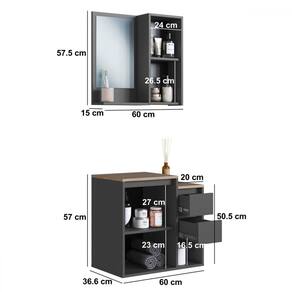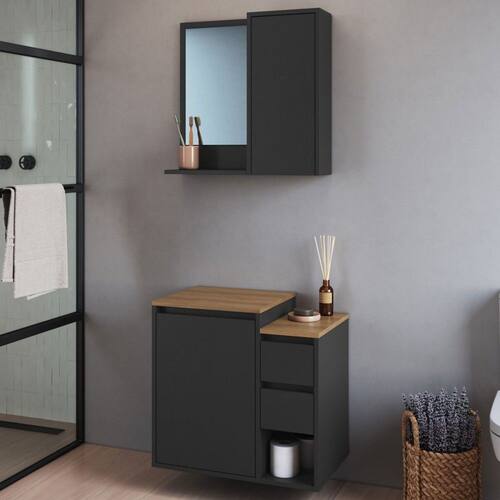 O(a) Armário de Banheiro Bari 2 Portas 2 Gavetas com Espelho Grafite - Art In Móveis é produzido em MDP na escala de brilho Fosco, e possui um grau de dificuldade de montagem: Médio.