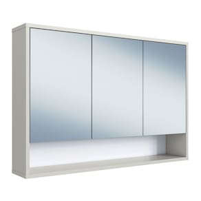 O(a) Armário de Banheiro Bari 3 Portas com Espelho Arenas - Art In Móveis é produzido em MDP na escala de brilho Fosco, e possui um grau de dificuldade de montagem: Médio.