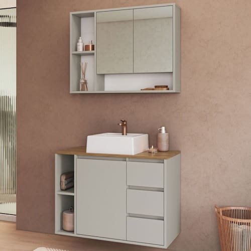 - Acompanha: Armário de Banheiro + Kit ferragens + Manual de Montagem