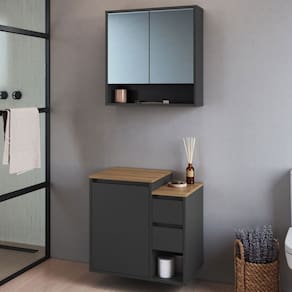 - Acompanha: Armário de Banheiro + Kit ferragens + Manual de Montagem