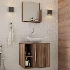 O(a) Armário de Banheiro com Cuba e Espelho Soft 1 Porta Nogal 13684 - Compace é produzido em MDP na escala de brilho Fosco, e possui um grau de dificuldade de montagem: Médio.