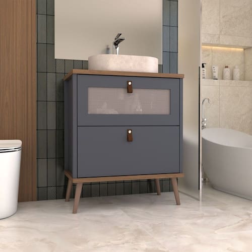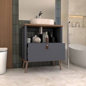 O(a) Armário de Banheiro Flandre 60 Cm 1 Porta e 1 Gaveta 100% Mdf Titanium/Freijó - Loja é produzido em 100% MDF na escala de brilho Semi-Brilho, e possui um grau de dificuldade de montagem: Médio.