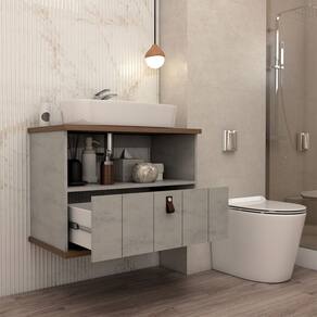 O(a) Armário de Banheiro Sierra 80cm 1 Porta e 1 Gaveta 100% Mdf Cimento/Freijó - Loja é produzido em 100% MDF na escala de brilho Semi-Brilho, e possui um grau de dificuldade de montagem: Médio.