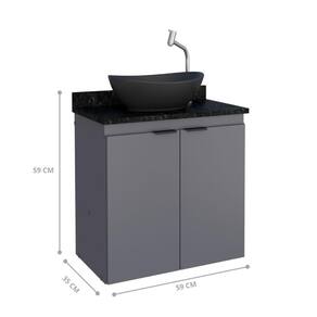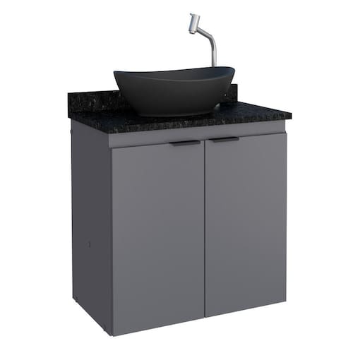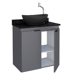 Estrutura em Madeira. Possui 2 portas, 1 prateleira e Lávotorio em mármore sintético com cuba centralizada