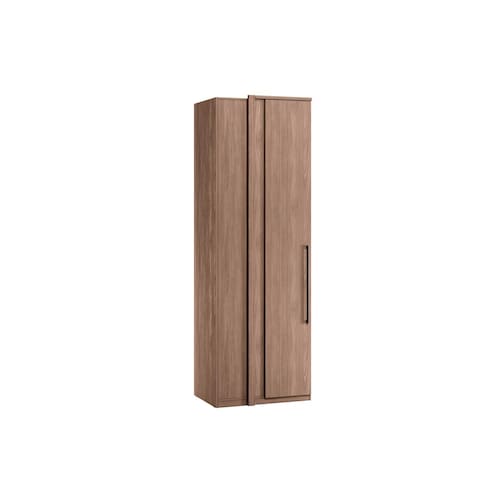 Cabideiros de Alumínio Equipado com 2 cabideiros em alumínio, 2 prateleiras e dobradiças com amortecedores, o módulo oferece conforto no uso diário e garante maior durabilidade. Os puxadores externos em alumínio completam o visual moderno e elegante.