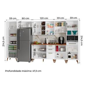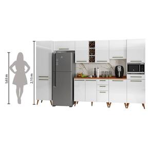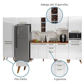 DESCRIÇÃO: O Armário de Cozinha Completa Favorita é um excelente produto para deixar a sua cozinha ainda mais linda e organizada. Ideal para aproveitar os espaços, e organizar os utensílios de sua cozinha. Possui quatro gavetas espaçosas, espaço para microondas e ad | MODELO: Armário De Cozinha Completa Com Adega 11 Portas 4 Gavetas Favorita Branco/Nature | MARCA:: Zanzini | COR:: Branco/Nature | Medidas inferiores (dimensão máxima):: [A] = 214,5 cm [L] = 377 cm [P] = 47,3 cm | PORTAS:: 11 | GAVETAS:: 4 | TIPO DE PORTA:: Com dobradiças | PRATELEIRAS:: 10 | PUXADORES:: Plástico | Medidas superiores (dimensão máxima):: [A] = 73,2 cm [L] = 377 cm [P] = 47,3 cm | ACABAMENTO:: UV-Verniz/Texturizado UV-Verniz | TIPO DE ACABAMENTO:: Fosco / Fosco | MATERIAL: : MDP 15 mm | TIPO DE PUXADORES: : Externos | PÉS:: 18 | MATERIAL DOS PÉS:: Plástico | MATERIAL DO TAMPO:: MDP25 mm | DOBRADIÇAS: : Metálicas 35 mm | CORREDIÇAS:: Telescópicas | GARRAFEIRO:: Comporta 12 garrafas | INFORMAÇÕES COMPLEMENTARES:: Fabricado com painéis de madeira reflorestada e certificada. | SISTEMA DE MONTAGEM:: Parafusos auto atarraxantes, cola, cavilhas, pregos | RECOMENDAÇÕES DE LIMPEZA: : Limpar com flanela ou pano macio seco, não utilizar produtos abrasivos, desengordurantes, álcool ou qualquer outro produto químico. Não expor o produto diretamente à luz solar e à umidade. | GARANTIA:: 3 meses contra defeito de fabricação. | ITENS INCLUSOS:: 1 Armário Aéreo; 1 Armário Aéreo duplo; 1 Balcão 1,20m; 1 Balcão 0,59cm; 1 Paneleiro Duplo; 1 Paneleiro Duplo p/ micro-ondas e 1 Armário Aéreo de Geladeira Cor: Branco Nature