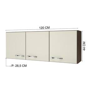 Armário De Cozinha 1,20mts Pop Faro 3p Noce / Off White - Indekes O Armário Pop Faro é um armário suspenso elegante e funcional, ideal para otimizar o espaço da sua cozinha. Fabricado em MDP de 15mm, este armário aéreo possui três portas, oferecendo armazenamento eficiente para utensílios, louças e alimentos. Seu design moderno e compacto harmoniza-se com diversos estilos de decoração, proporcionando praticidade e organização sem ocupar espaço no chão. O Armário Pop Faro é a escolha perfeita para quem deseja uma cozinha mais organizada e estilosa.Dimensões do Produto Montado:Altura: 44 cmLargura: 120 cmProfundidade: 29 cmObservações:- MDP 15MM- Pintura UV- Puxador de sobrepor em ABS - 3 Portas