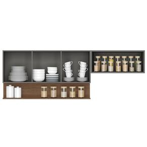O Armário de Cozinha 150cm com Aéreo 70cm Lina K02 Gris/Freijó, da Mpozenato é ideal pra você que quer aproveitar o espaço vazio na parede da sua casa!