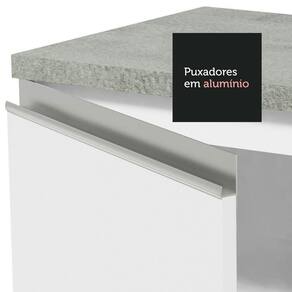 Este móvel vem equipado com puxadores de alumínio e fechamento suave das portas graças aos amortecedores. Para completar, possui pés reguláveis em PVC e rodapé removível em MDP.