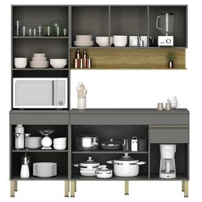 Que tal ter uma cozinha prática, versátil e charmosa? Conheça o Armário de Cozinha 3 Peças Balcão 120cm com Tampo Lina06 Z06 Gris/Freijó, da Mpozenato.
