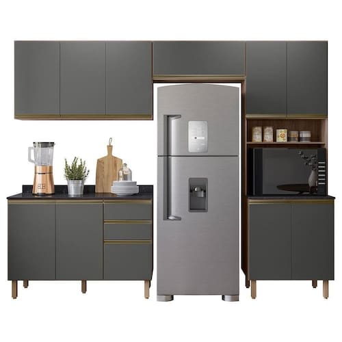 O Armário de Cozinha 4 Peças Com Tampo Lita N03 Carvalho/Grafite, da Mpozenato, é a combinação perfeita de funcionalidade e estilo.