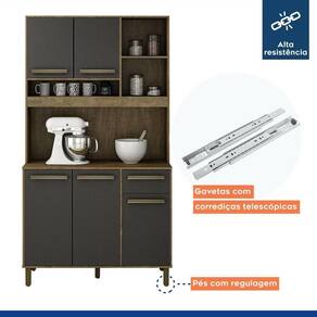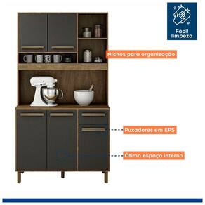 Espaco para organizar tudo o que voce precisa e um design pensado para deixar o seu comodo de chef mais bonito: essas vantagens voce so encontra no Armario Ametista. Unindo compartimentos internos essenciais, ela recebe bem os utensilios, panelas, loucas e embalagens de alimentos, alem de acomodar tambem aqueles eletrodomesticos indispensaveis para um dia a dia mais pratico. Enquanto isso, por fora, a estrutura tradicional, que se encaixa muito bem no ambiente, carrega uma coloracao sobria que e reforcada pelos puxadores discretos, perfeitos para quem quer acrescentar charme a decoracao sem deixar de lado a elegancia de uma peca versatil.