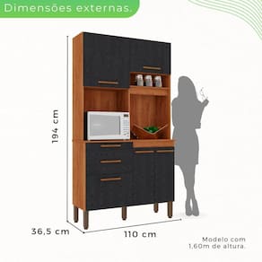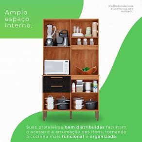 Se você adora organização, olha só que dica bacana para deixar a sua cozinha ainda mais bonita e completa, do jeitinho que você sempre sonhou! O Armário de Cozinha Dubai é o que você precisa para sua cozinha. Ele possui diversos compartimentos para guardar utensílios, mantimentos e o que você quiser. São prateleiras espaçosas para organizar tudo do jeito que sempre quis, 2 gavetas com corrediças telescópicas para melhor abertura e cores e estilo que combinam com qualquer ambiente. Aproveite e adquira logo este lindo armário de cozinha!! Acabamento da Gaveta: Pintura UV Acabamento da Porta: Pintura UV Acabamento da Prateleira: Pintura UV Altura dos Pés: cm Ambiente Principal: Cozinha Complexidade da Montagem: Média: pode ser montado por mais de uma pessoa e/ou necessite de maior conhecimento para montagem Cor: Cinamomo/Preto Cor do Produto: Cinamomo/Preto Escala de Brilho: Fosco Escala de Brilho da Porta: Fosco Escala de Brilho da Prateleira: Semi-Brilho Espessura do Material da Estrutura: mm Espessura do Tampo: mm Gaveta com Chave: Não Itens Inclusos: 1 Armário de Cozinha completo, Manual de Montagem e Kit Ferragens. Linha ou Coleção: Dubai Manual de Montagem e Instalação: https://cdn2.madeiramadeira.com.br/atributo/salleto/1713282-kit-cozinha-dubai.pdf Material da Dobradiça/Corrediça da Porta: Metálica Material da Gaveta: MDP Material da Porta: MDP Material da Prateleira: MDP Material do Puxador da Gaveta: MDF Material dos Pés: Polipropileno Necessita Montagem: Sim Origem do Produto: Nacional Peso: 45 kg Peso Máximo por Gaveta: 5 kg Peso Máximo por Prateleira: 3 kg Possui Espelho: Não Possui Possui Pés: 05 Possui Portas: Sim Possui Prateleiras: Sim Possui Rodízio: Não Recomendações de Uso, Manutenção e Limpeza: Para limpar corretamente seus armários de madeira, use sempre um pano liso e levemente umedecido com água. Sapatas Niveladoras: Sim Sistema de Montagem: Parafusos, Cavilhas, Dobradiças e Puxadores. Tipo de Corrediça da Gaveta: Telescópica Tipo de Dobradiça/Corrediça da Porta: Simples Tipo de Puxador da Gaveta: Externo Tipo de Puxador da Porta: Externo